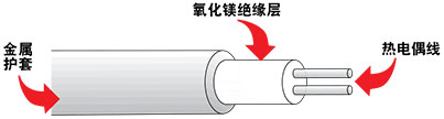 • ? 絕緣層的最高工作溫度。在使用MgO 絕緣層的情況下,最高工作溫度超過 1650?C (3000?F)